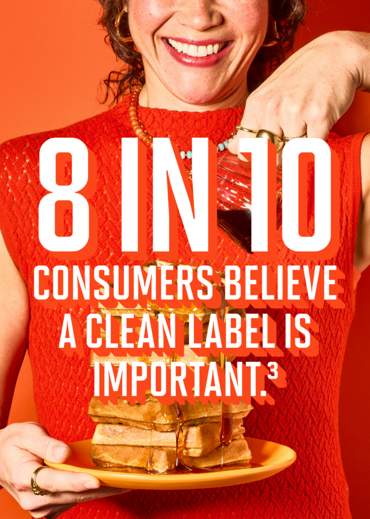 Clean labels are on trend as audiences across all demographics pay closer attention to what is in the food they consume. As with any trend, it’s important to understand where consumers are coming from so you can meet their demands. But they don’t necessarily agree on what constitutes a clean label. At heart, most definitions are grounded in a broad effort to increase transparency and clearly convey ingredients and formulations in user-friendly terms. This is part of an ongoing trend of modern consumers favoring brands they feel represent their ideals. “An expanding definition of clean label… aligns Gen Z and Millennial purchasers with their values,”1 writes one expert. But the tricky thing about values is that no two people hold exactly the same ones. That has led to a proliferation of clean-label-adjacent claims that are also highly scrutinized by consumers. “Demands have evolved,” according to a recent article, “Natural and artificial-free are now the bare minimum, and today’s top requests range from GMO-free and “real” ingredients, to products that take human and animal welfare, supply chain transparency, and sustainable sourcing into account.”2 With so many possible avenues to explore, it’s easy to feel lost. But we know one ingredient that allows you to get to the good stuff, right away.